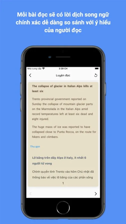 2. Nâng cao trình độ đọc hiểu tiếng anh của người dùng mỗi ngày bằng những bài đọc ngắn, câu ngắn có lời dịch