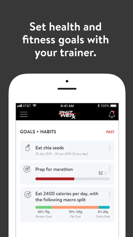 With the PHiiT WERx App, you can start tracking your workouts and meals, measuring results, and achieving your fitness goals, all with the help of your personal trainer.
