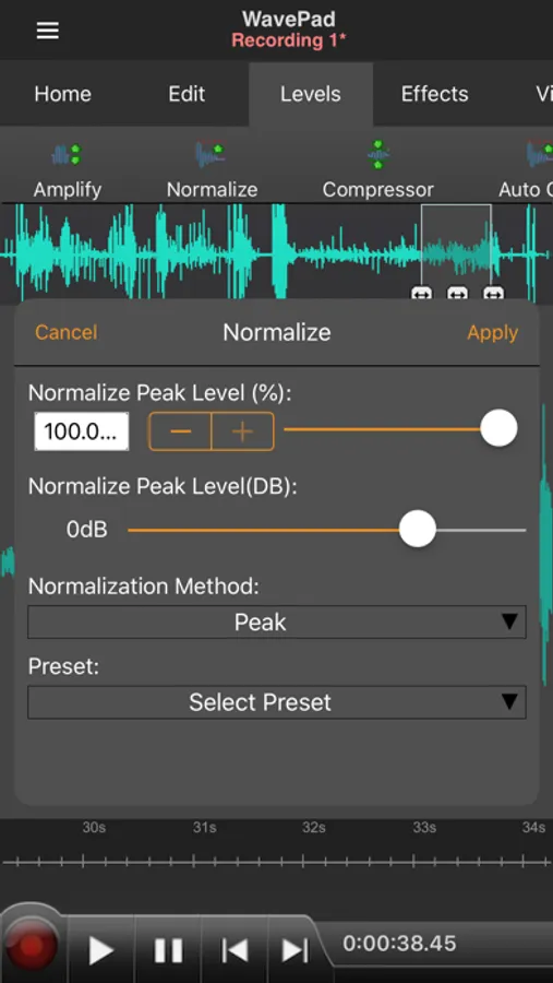 A professional sound editor for recording, editing, adding effects, and sending audio, WavePad allows you to record voice or music, then edit the recording and add effects to achieve high quality audio recordings. Work within audio waveforms to make selections for quick editing, such as inserting recordings from other files, or apply effects like the high pass filter to clarify audio quality. For journalists and other professionals making recordings on the go, WavePad makes it easy to store or send recordings so they are readily available wherever they are needed.