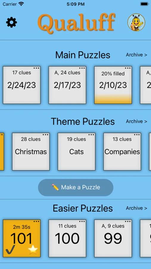 Qualuff Puzzles is a collection of acrostic puzzles that will challenge (and maybe even increase) your knowledge of trivia and vocabulary. It's great for people who like word puzzles or want to exercise their brain. Each letter of the answers to the clues is linked to a letter in a quote. You can work back and forth between the clues and the quote until you've figured out all of the letters.