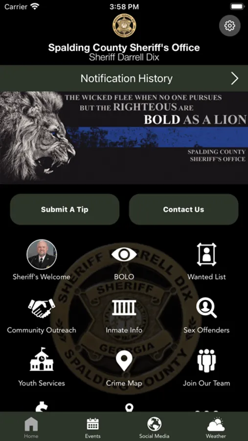 The Spalding County Sheriff’s Office (GA) mobile application is an interactive app developed to help improve communication and partnerships with area residents. The app allows residents to connect with the Spalding County Sheriff’s Office, Ga by submitting tips, providing public feedback and other interactive features, as well as providing the community the latest public safety news and emergency alerts.