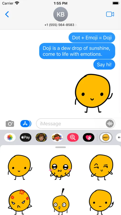 Brighten your iMessage conversation with all of Doji's expressive emotions! Whether it's anger, cuteness, or shock - Doji is your dot!