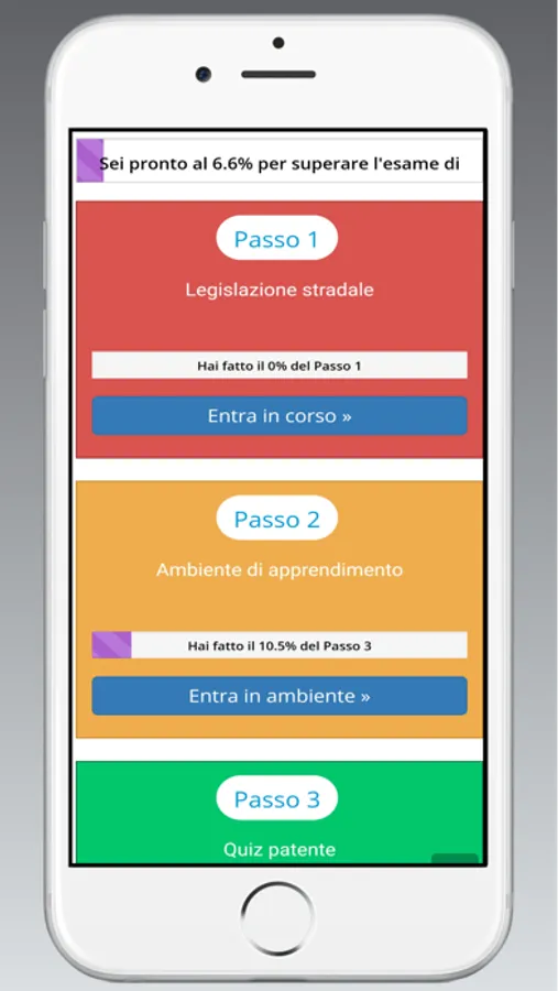 Passo 2 - L’ambiente d’apprendimento: qua si trovano tutte le domande ufficiali con le risposte corrette, verificate dai professionisti e spiegate audio-video tramite animazioni 3D per essere capite più facile.