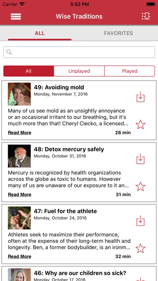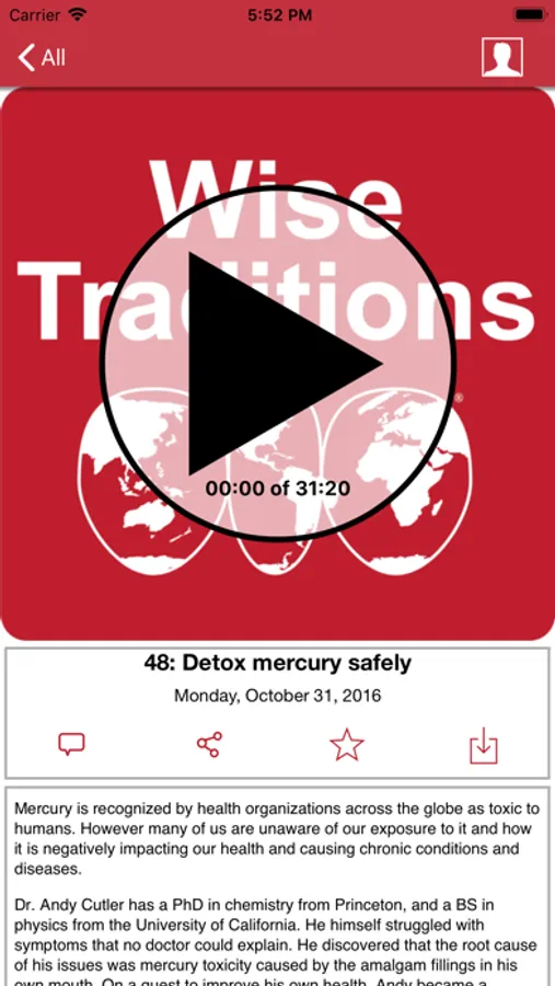 With this app you are always connected to the latest episodes and the show. Quickly star episodes and save them to a list so you can easily enjoy them over and over! This app has a Car mode too! Rotate your phone to display larger playback controls. It is the best and most convenient way to access The Wise Traditions Podcast.