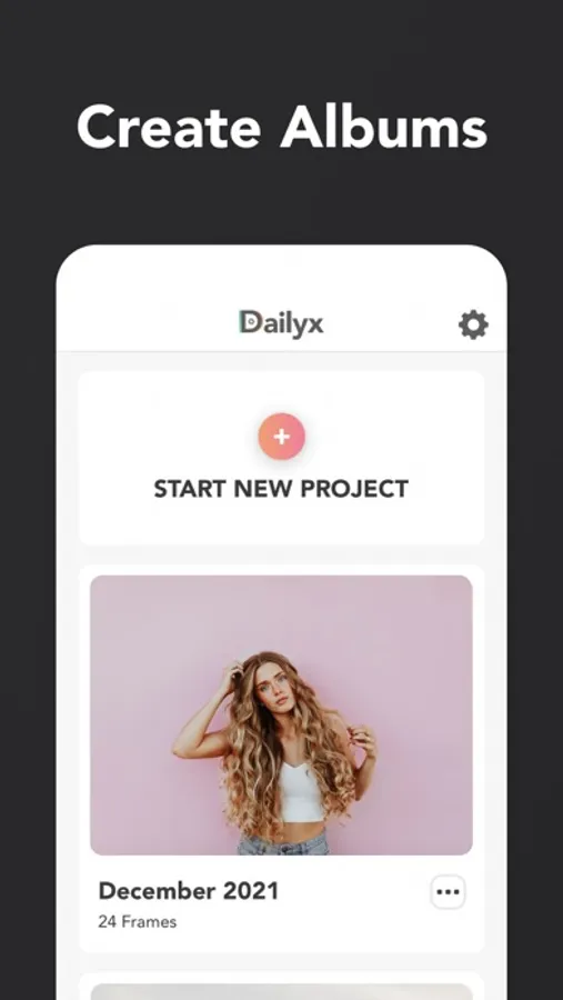 Start your journey by creating a new album. Just click the add button on the main screen - that's all. You can change the name, reminder time, days and set the album as private or leave the default option without changes.