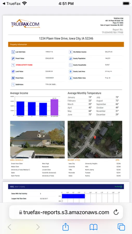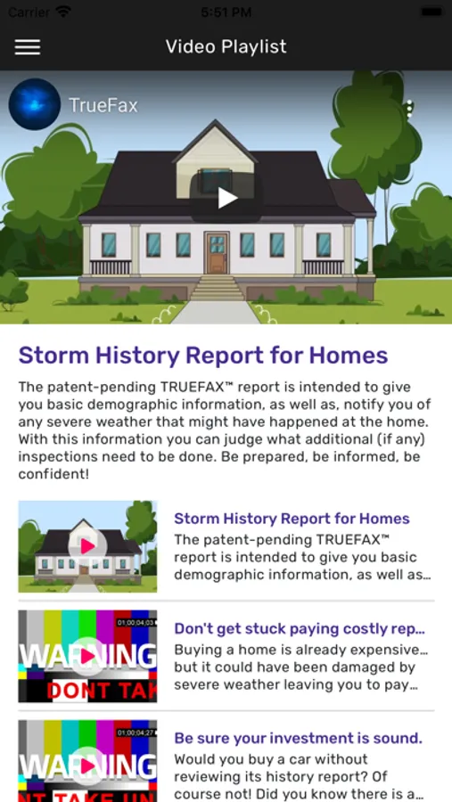 A TrueFax report shows possible damage to a house just like a CARFAX report shows possible damage to a vehicle. Using our nationwide database regarding hail, high winds and lightning; TrueFax lists the frequency and severity of storms that may have caused property damage.