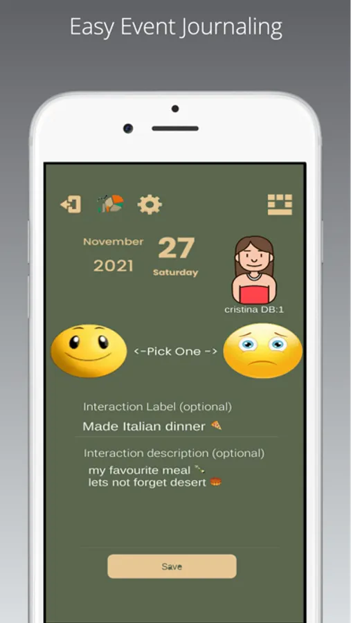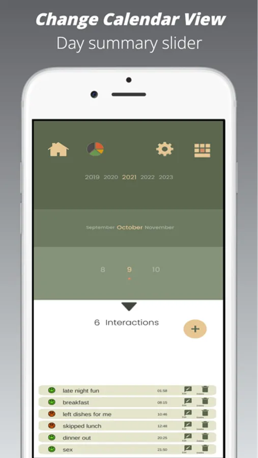 Keep it simple or more detailed. Use the Cupid’s diary to record and journal your mood with two simple clicks or add notes (short or long) and an emoji for fast reference, fun or categorization.
