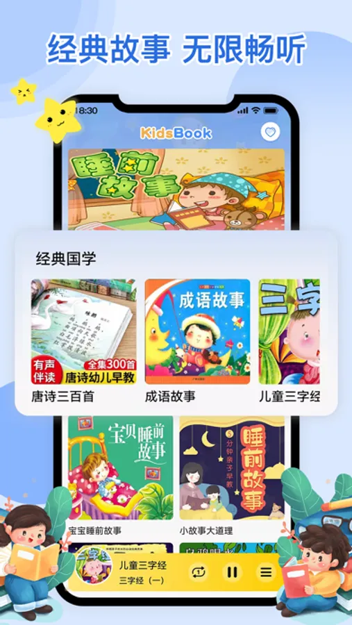 有声儿童故事大全,包含睡前儿童故事、成语故事、语言故事、童话故事、国学经典等,汇集宝宝喜爱的海量启蒙儿歌、启蒙儿童故事,有利于不同年龄层的宝宝收获知识,助力宝宝全面发展。