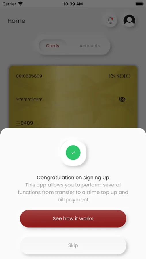 Mobile wallet app for managing virtual cards issued for ESSOLO members .