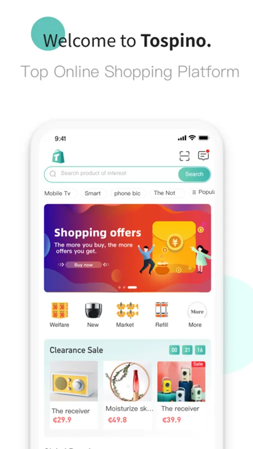 TospinoMall is an localized integrated shopping mall focusing on emerging markets in Africa, equipping with such online functions as product searching, browsing, collection, buying, payment, order inquiry, logistics tracking and return/exchange. By convenient cross-border direct mail, it converges huge global good products to meet people’s needs on daily consumption and online shopping, bringing consumers an easy, happy shopping experience.