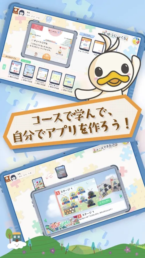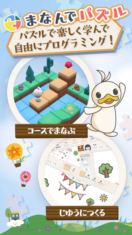 『まなんでパズル』は、子供向けブロックプログラミング教育アプリです。3Dゲーム画面で楽しく遊びながら、基礎から応用までプログラミングを学べます。さらに自分のアプリをつくりながら自然に論理的な思考力や想像力、創造性を身につけることができます!