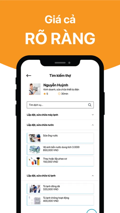 - Tham khảo được giá cạnh tranh, yêu cầu Thợ gửi báo giá, được lựa chọn Thợ theo yêu cầu, thông tin chi tiết về Thợ.