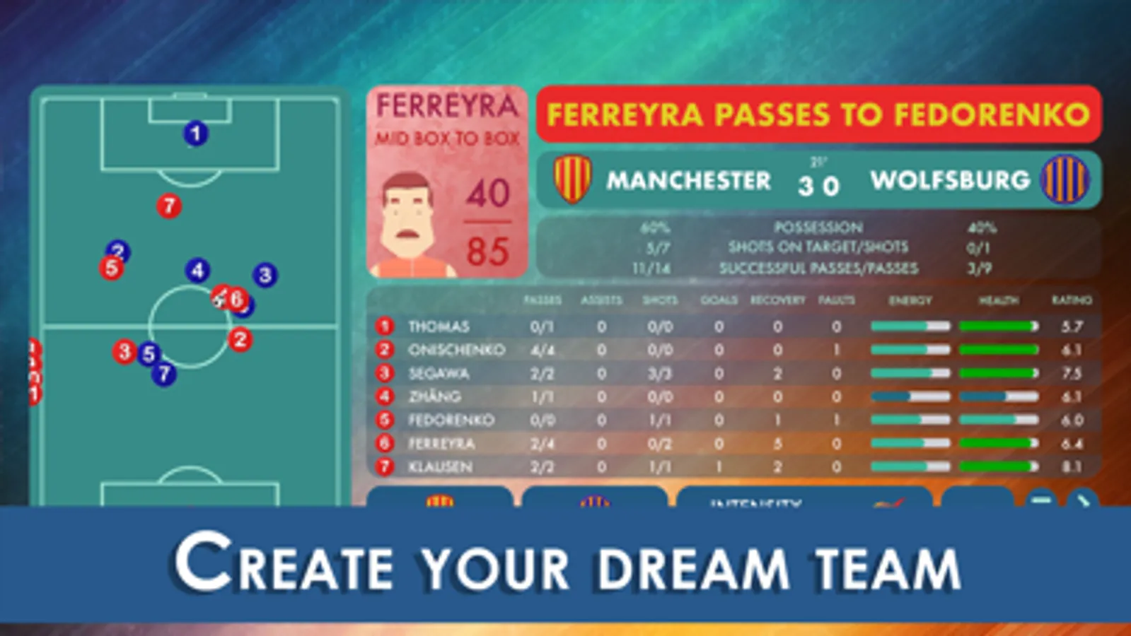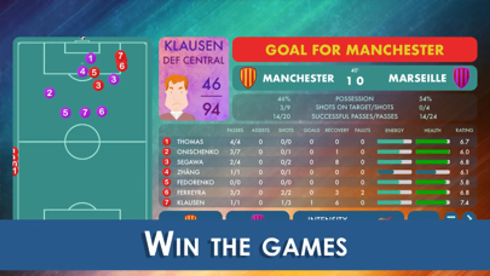 Monitor your players' energy and health levels and make timely substitutions.