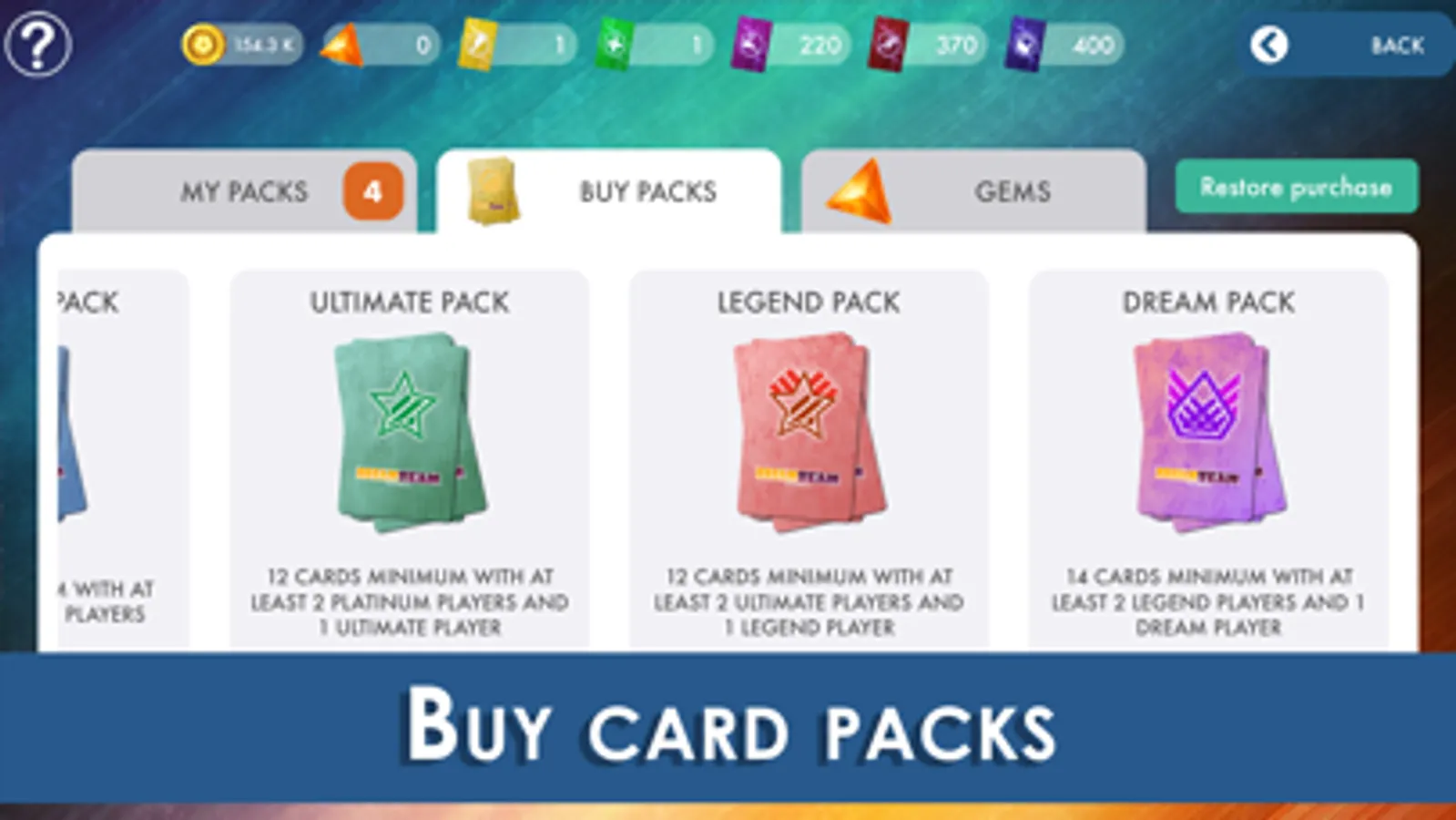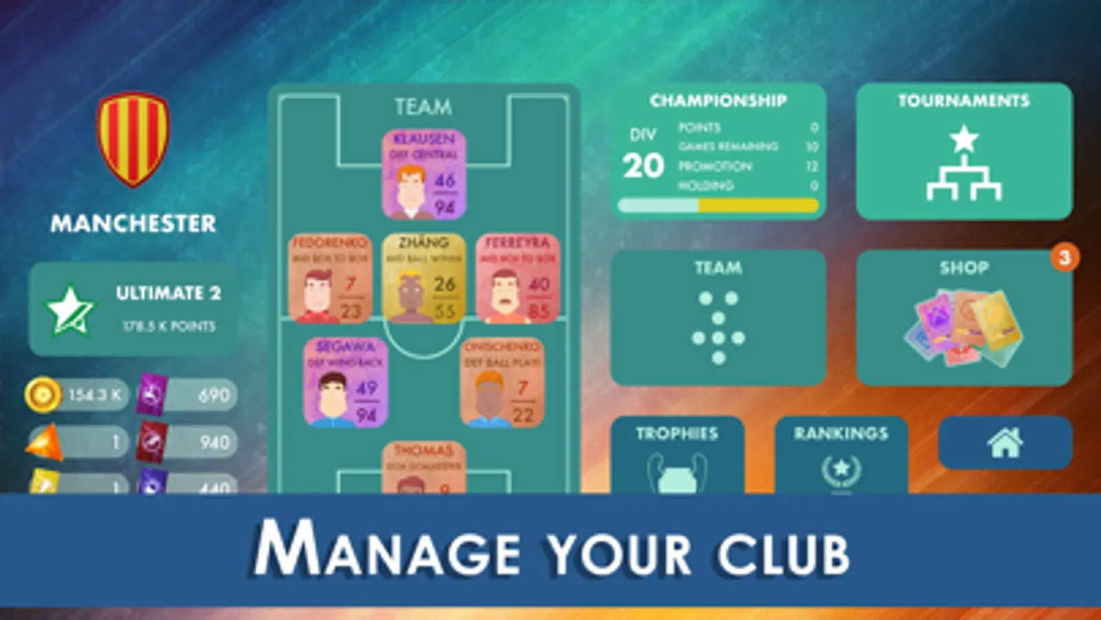 Earn credits, buy player packs, improve their attributes. Build the best team to join the best leagues and win the biggest tournaments.