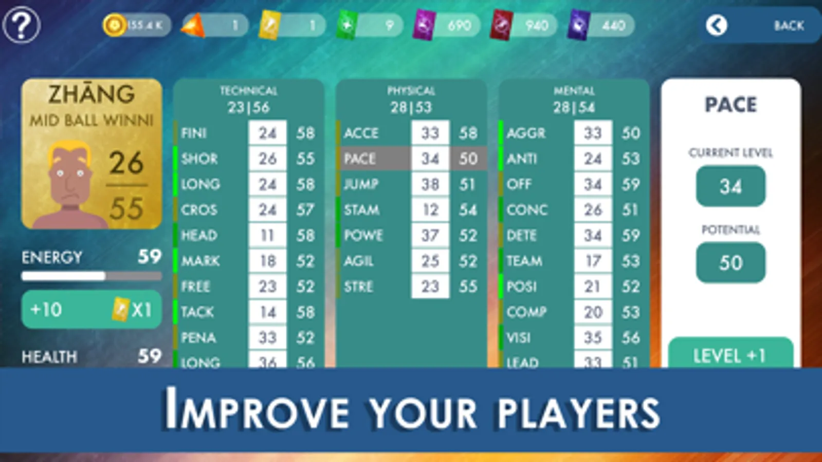 Use your attribute boosters to improve the 30 attributes of your players and help them reach their potential.