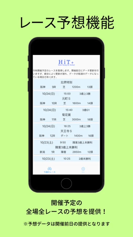 「HiT Plus」は競馬の過去のレース情報から独自のアルゴリズムで好走馬を導き出すアプリです。