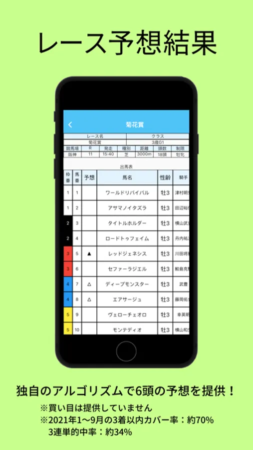 独自のアルゴリズムを使用して勝ち馬の予想を提供しています。