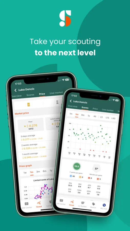 Download the app to manage your membership, see detailed match information with player stats, including fantasy points broken down by decisive and all-around scores. The app also includes player scouting and market tools to help Sorare managers discover which players' cards they may want to purchase, and see the market values of those cards in all scarcities.