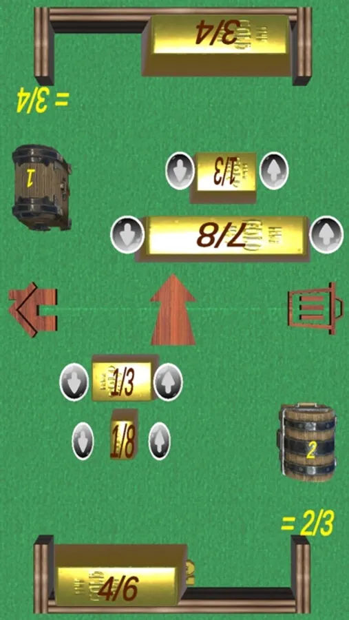 When the sum of fractions of bars in BOX is equal to 1 - fractions combine into one bar = 1kg of gold, which flies away to the correct chest.