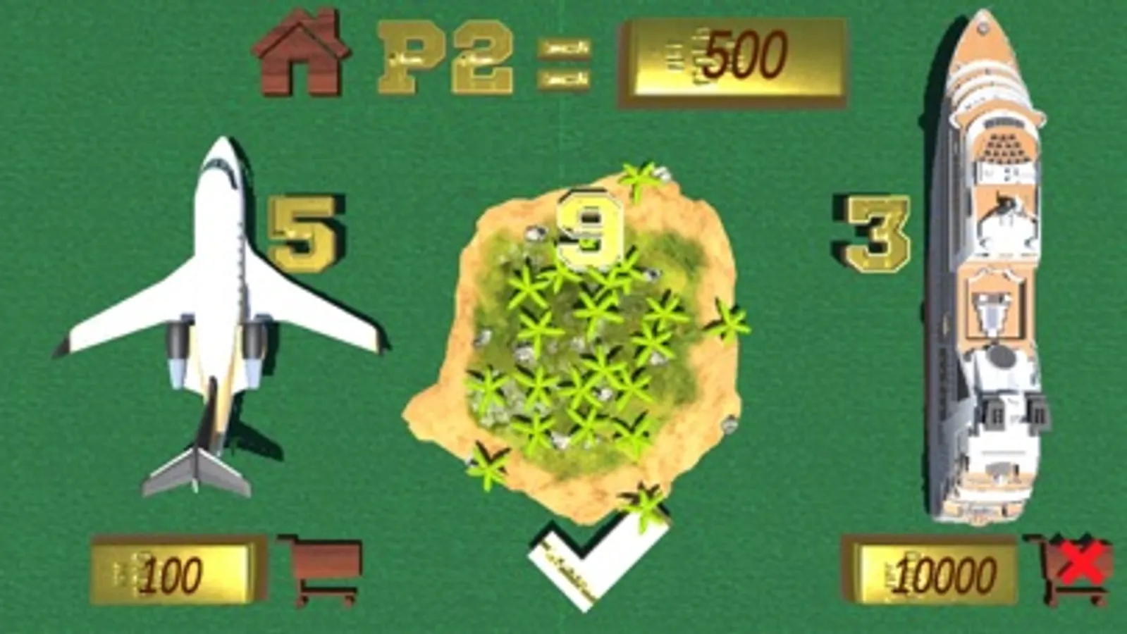Planes, Desert Islands and Cruise Ships can be bought for the assets collected.