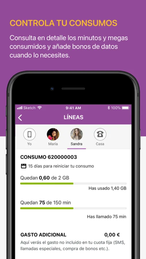 Con ella podrás gestionar desde tu móvil todo lo que tenga que ver con tus líneas de una manera simple y rápida.