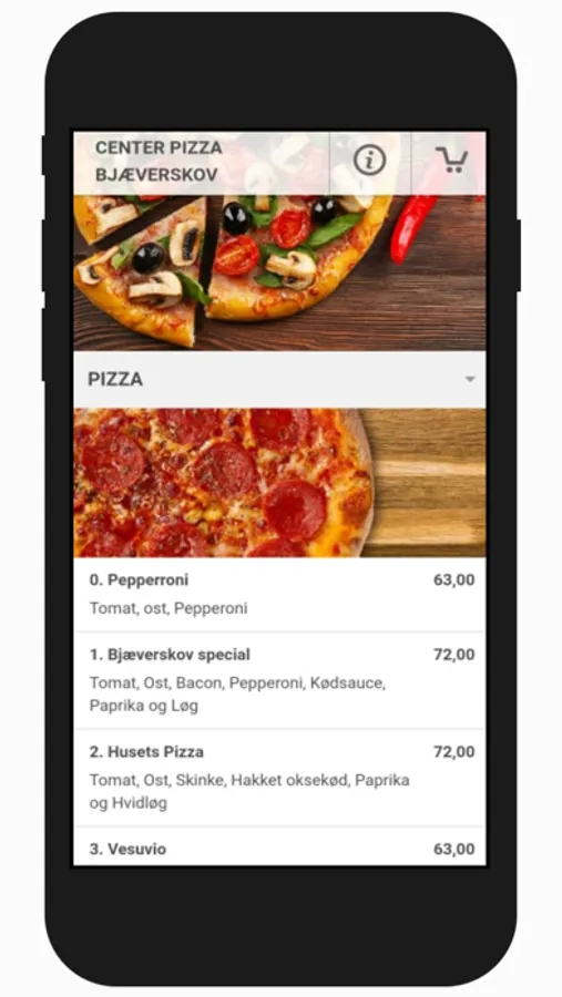 Med denne app kan du bestile din mad online fra Center Pizza Bjæverskov.