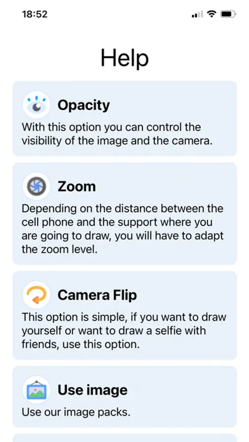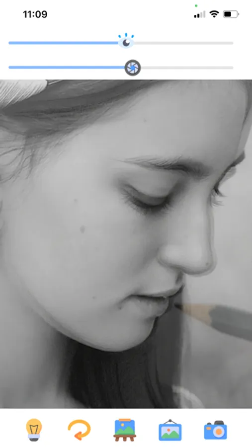 Just select an image on screen, place a blank paper in front of the mobile and start tracing.