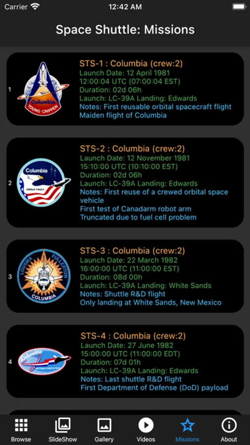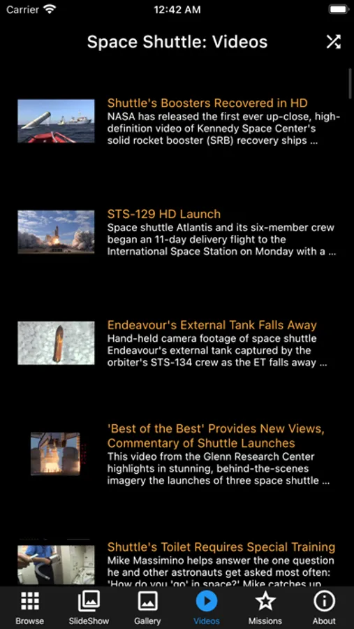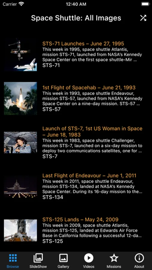 You will have a nice user experience and obtain detailed information while navigating through the beautiful photos taken by the Space Shuttle Missions.