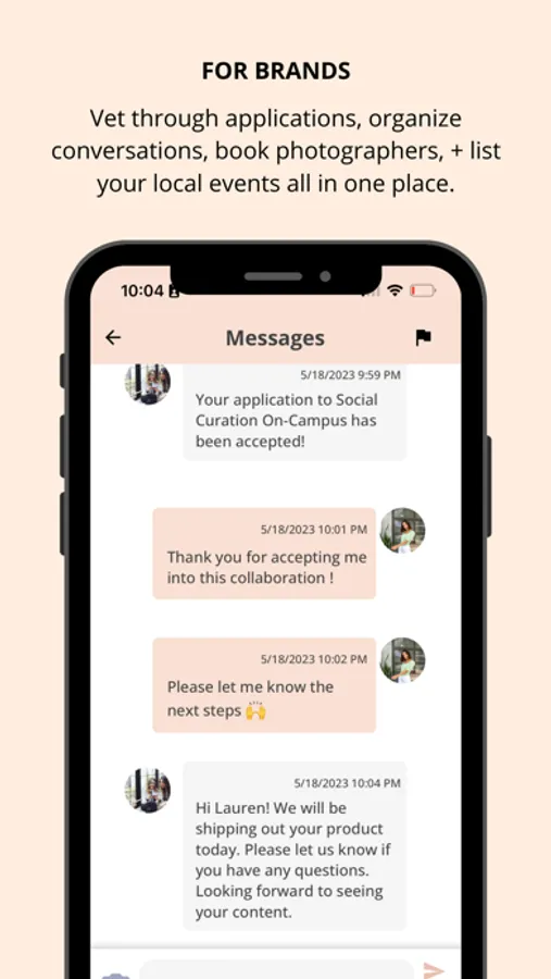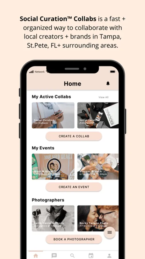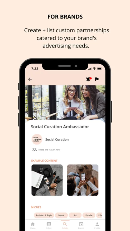 Create and list custom partnerships catered to your brand's advertising needs. Build a rolodex of creators that want to work with your brand and create content with you and on your behalf. Vet through applications, organize conversations, book photographers, and list your local events all in one place.