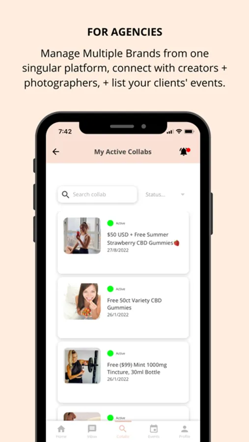 Create your profile, apply to collaborations with local and remote brands, attend and list your events, book photographers, and receive free gifting/get paid.