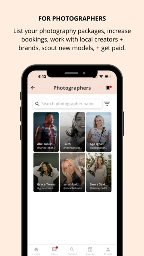 List your photography packages, increase bookings, work with local creators and brands, scout new models, and get paid.