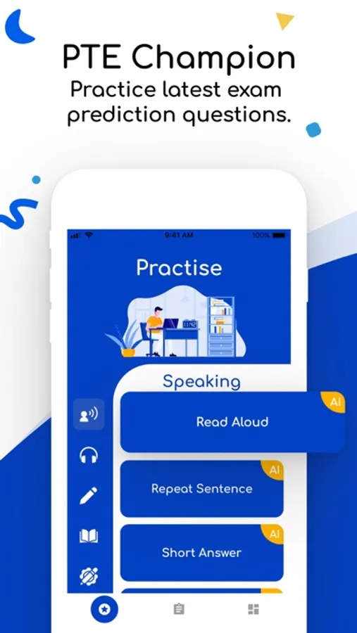 Do you need to prepare for a PTE exam? English is not your first language? No problem, now you got PTE Champion. Our PTE test app gives you the most comprehensive PTE academic practice so you can pass your PTE test with great results!