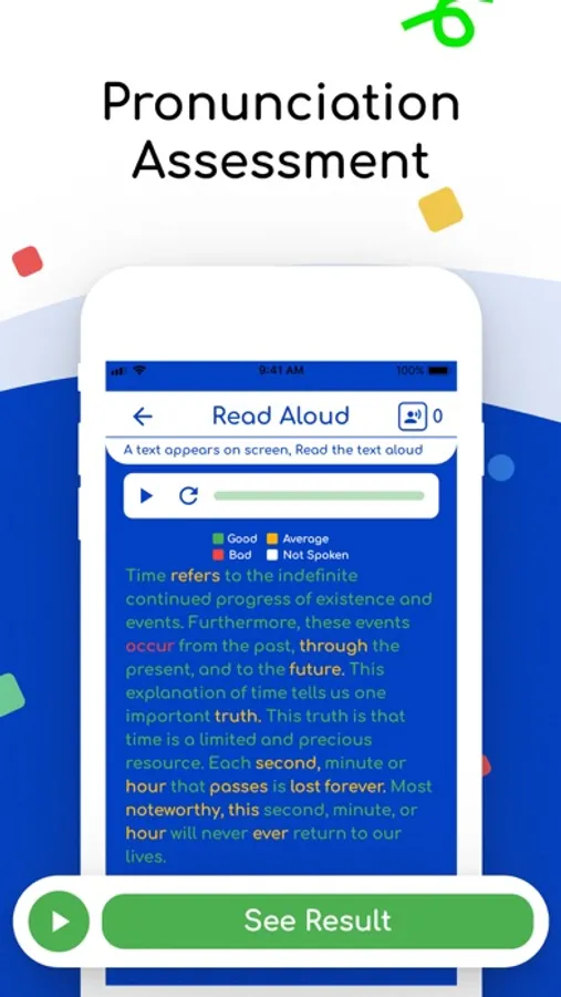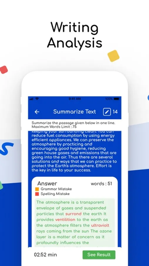 Start your PTE academic practice test preparation by testing and improving your speaking skills. Choose between Read Aloud, Repeat Sentence, Describe Image, Retell Lecture, and Short Answer, and get the feeling of a real PTE test. Our app uses your microphone to analyze your speech and pronunciation and also features an HQ voice-over so you can listen to the text being pronounced by a native speaker.