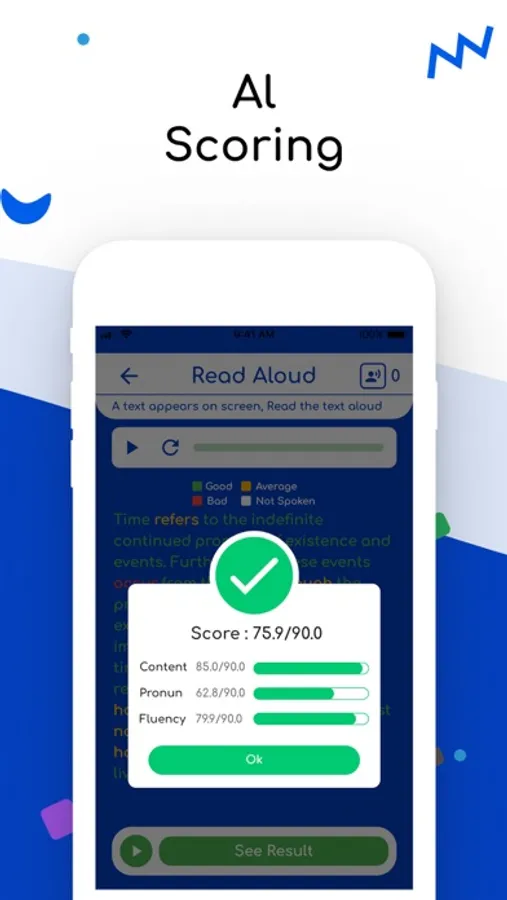 Get real AI scoring prediction for each PTE test section. Know your advantages and flaws so you can smartly prepare for your PTE test. Just select the sections with “AI” icon and try our realistic AI scoring.