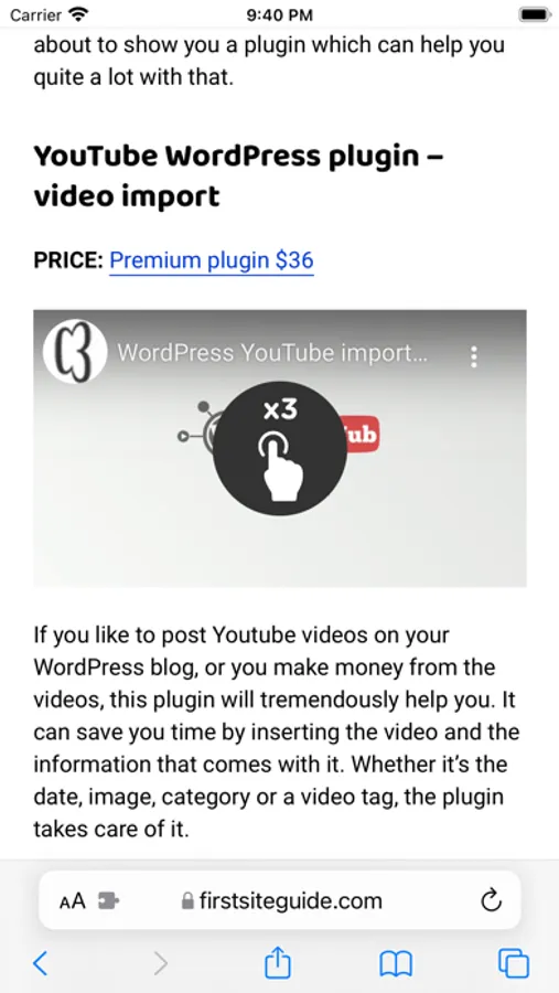 You should be able to browse the web without videos autoplaying and hijacking your system audio. Enabling Touchtube will disable the touch and scroll autoplay behavior on embedded Youtube videos in Safari.