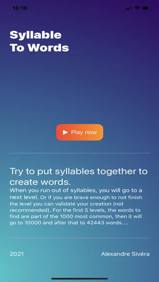 Build words with syllables that appears on screen. The longer you play the more syllables will appear.