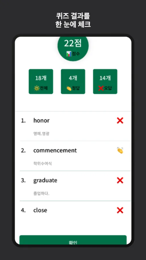 5.암기한 영어문장은 영어단어 퀴즈를 통해서 한번 더 체크 할 수 있어요.