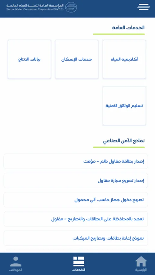SWCC application is the platform to serve all the citizens of "Saudi Arabia". The engineers, researchers & experts can benefit from all the features of the SWCC application. It also provides a service to report any problem/incidents related to the institution inside the country, and you can create a request to visit any plants or buildings of (SWCC) inside Saudi Arabia.