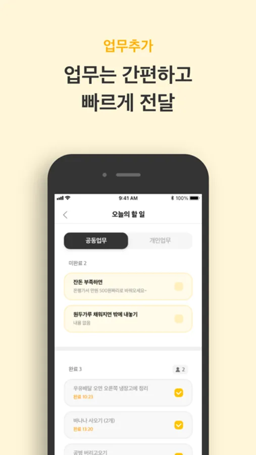 - 간편한 완료 방식으로 빠르게 업무를 체크할 수 있어요.