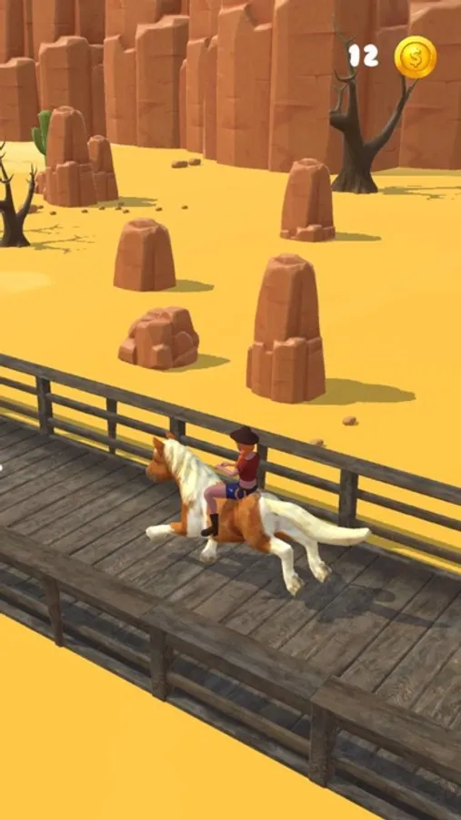 Be careful! If you hit obstacles, skeletons will catch you. You have to get on your horse and reach the treasure without getting caught by them.