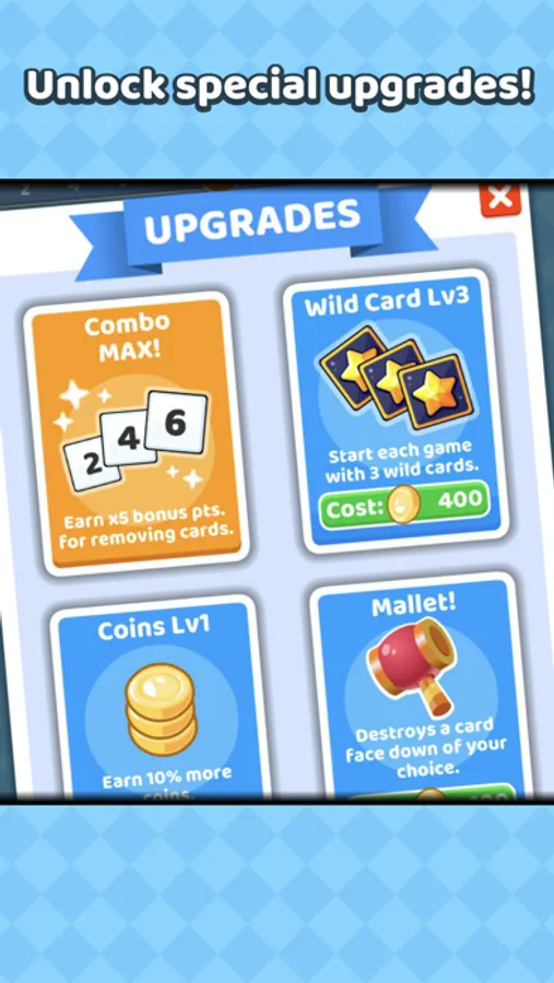 Take solitaire to the next level by using your coins and tickets for premium upgrades.