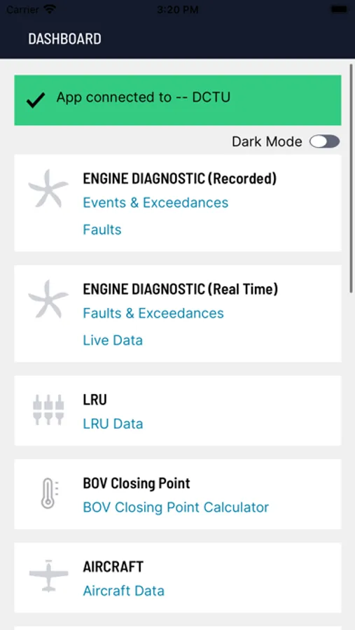 The Pratt and Whitney Digital Engine Services (DES) team developed the Data Collection and Transmission Unit (DCTU) application to communicate with the DCTU hardware on the PT6 E-Series™ engine using wireless connection to perform maintenance actions such as: