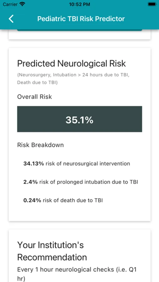 A clinical decision support tool that is intended to help guide the management of children with mild traumatic brain injury and intracranial injury.
