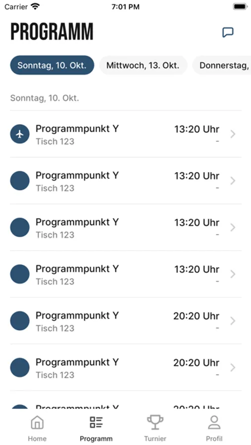 Neben Programmpunkten und einen persönlichen Helpdesk stehen Dir in der App folgende Funktionen zur Verfügung: