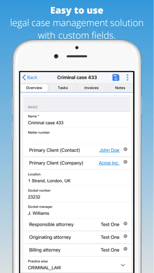 Powerful CRM with contact management capability. All your client details in one place, including any cases, tasks or files.