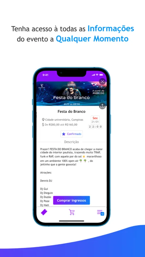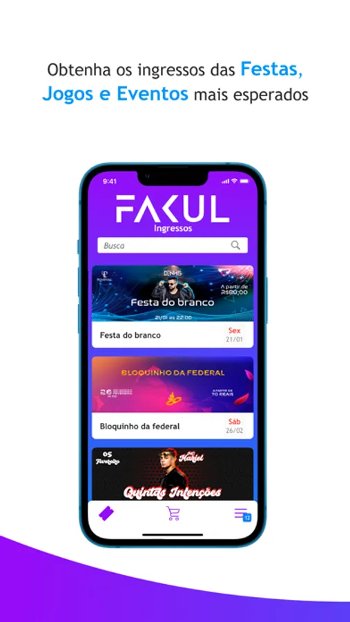 - Compra de ingressos das festas, jogos e eventos mais esperados