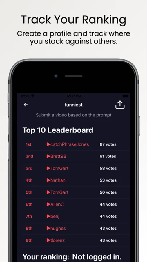 The Gamify app allows you to check out and join challenges for fun. Vote on your favorite videos by comparing two videos at a time within a given challenge. See who's winning the current challenge by checking out the leaderboard