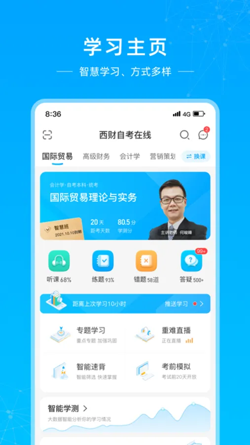 西南财经大学是教育部直属的国家"211工程”和“985工程”优势学科创新平台建设的全国重点大学,也是国家首批“双一流”建设高校。黄浦浣花风雨长,光华柳林谱华章。历经江流潮涌的时代变迁,西南财经大学始终与国家民族共命运,始终与时代发展同进步,栉风沐雨、奋进超越,培育了“经世济民、孜孜以求”的大学精神,奠定了"开放包容、求是创新”的学术底蕴,培养了“治国兴邦、奉 献社会”的栋梁之才,铸就了"兴学报国、民族担当”的历史丰碑。学校不断强化学科发展战略引领, 着力构建特色鲜明、优势突出、结构合理、充满活力的学科生态体系。现有理论经济学、应用经济学、 工商管理、管理科学与工程、统计学、社会学、法学7个博士学位授权一级学科 , 6个硕士学位授权一级 学科,19个专业学位授权点;拥有金融学、政治经济学、会计学和统计学4个国家重点学科, 5个省级重点一级学科;有理论经济学、应用经济学、工商管理和管理科学与工程4个博士后流动站。应用经济学进 入世界一流学科建设行列;工商管理通过EQUIS和中国高质量MBA双认证;中国大陆首家通过AACSB商科和会计双认证。 高等教育自学考试,是对自学者进行以学历考试为主的高等教育国家考试,是个人自学、社会助学和国家考试相结合的高等教育形式。西南财经大学(以下简称学校) 一直是四川省高等教育自学考试主考学校,也是四川省教育考试院首批试点建设的四川省高等教育自学考试学习服务中心之一。
