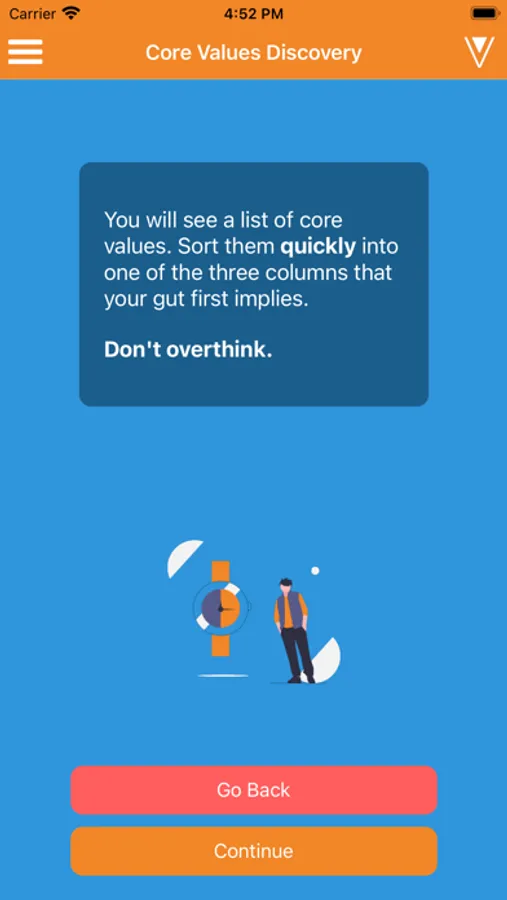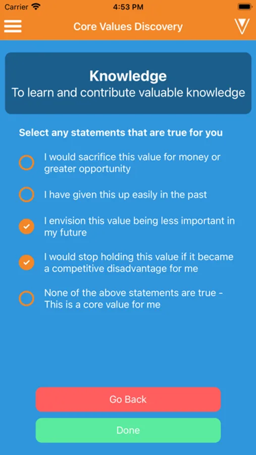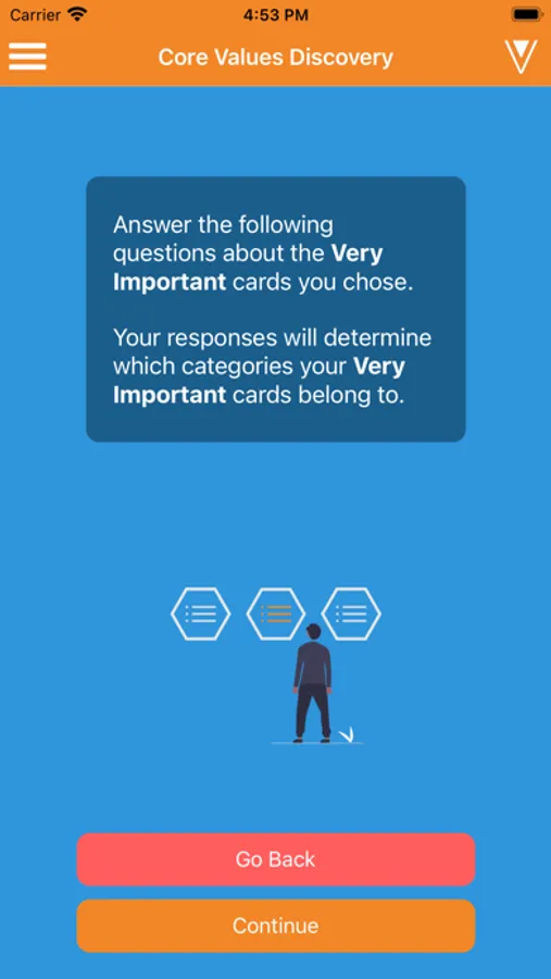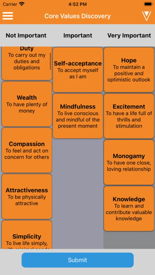 The Core Values Exercise app lets you quickly and easily run through the discovery exercise provided by The Vantage Group Inc. You can login with a Google or Apple account, and get going right away!