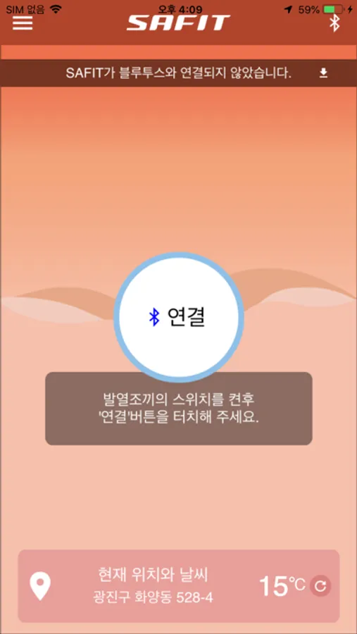 ※ 발열조끼 스위치는 모바일이 앱이 연결되면 다른 모바일 기기에서 연결을 허용하지 않게 되어 있습니다.